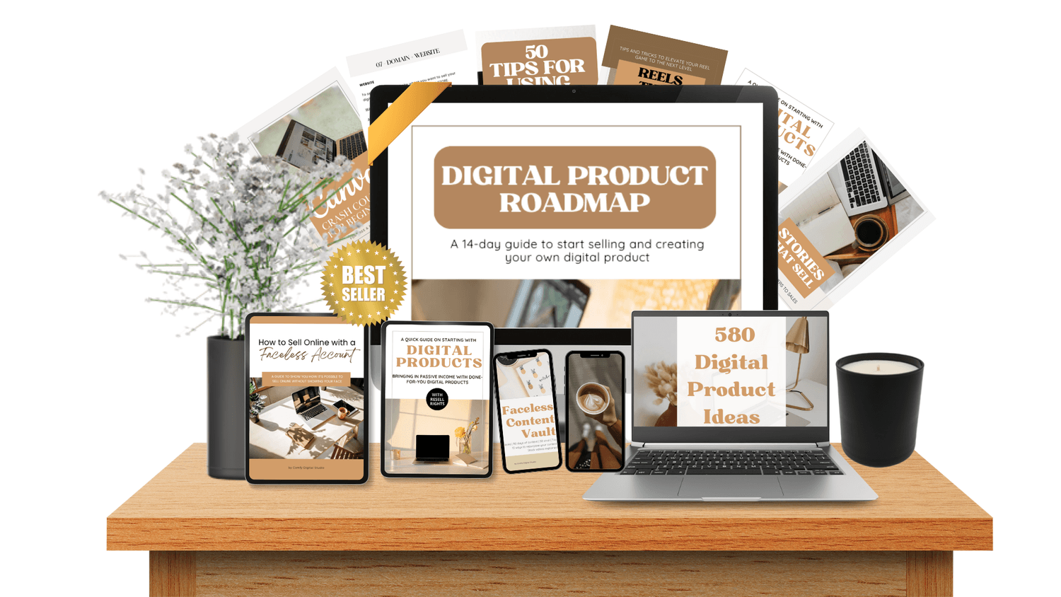 If you're not familiar with digital marketing or graphic design, don't worry! The Digital Product Roadmap provides ready-made templates that you can easily customise. Just add your personal touch, and you'll be all set to start selling!